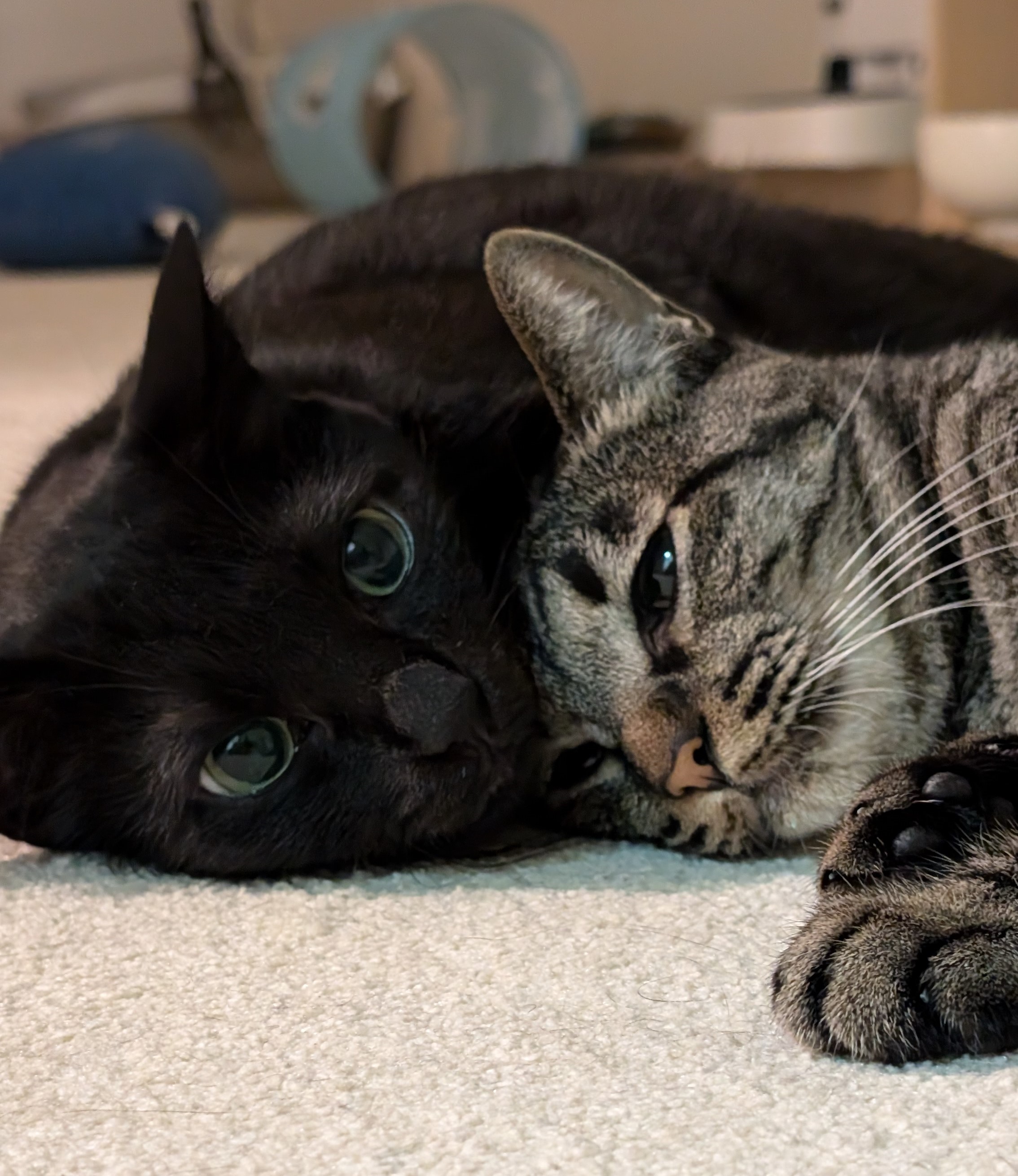 - まだ、社長の自宅でできる範囲でお手伝いをしています。3頭のにゃんこが譲渡され、現在2頭のにゃんこが3頭の在住にゃんこと一緒に生活しています。